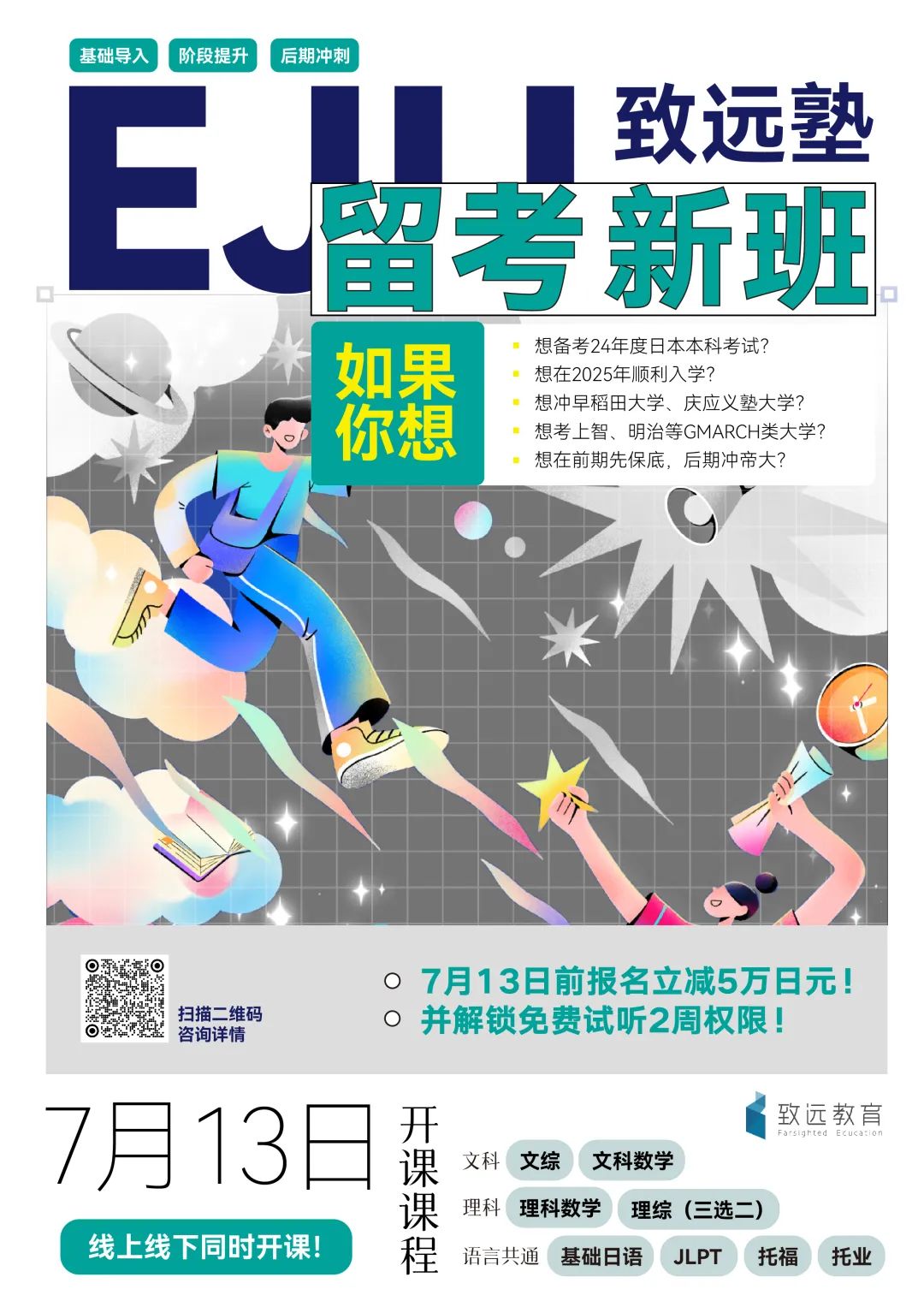 致远塾EJU留考7月新班将继续启航,只要你来,我们便会陪伴你走好走进日本名校的每一步,让你的每一步都走得踏踏实实,铿锵有力!