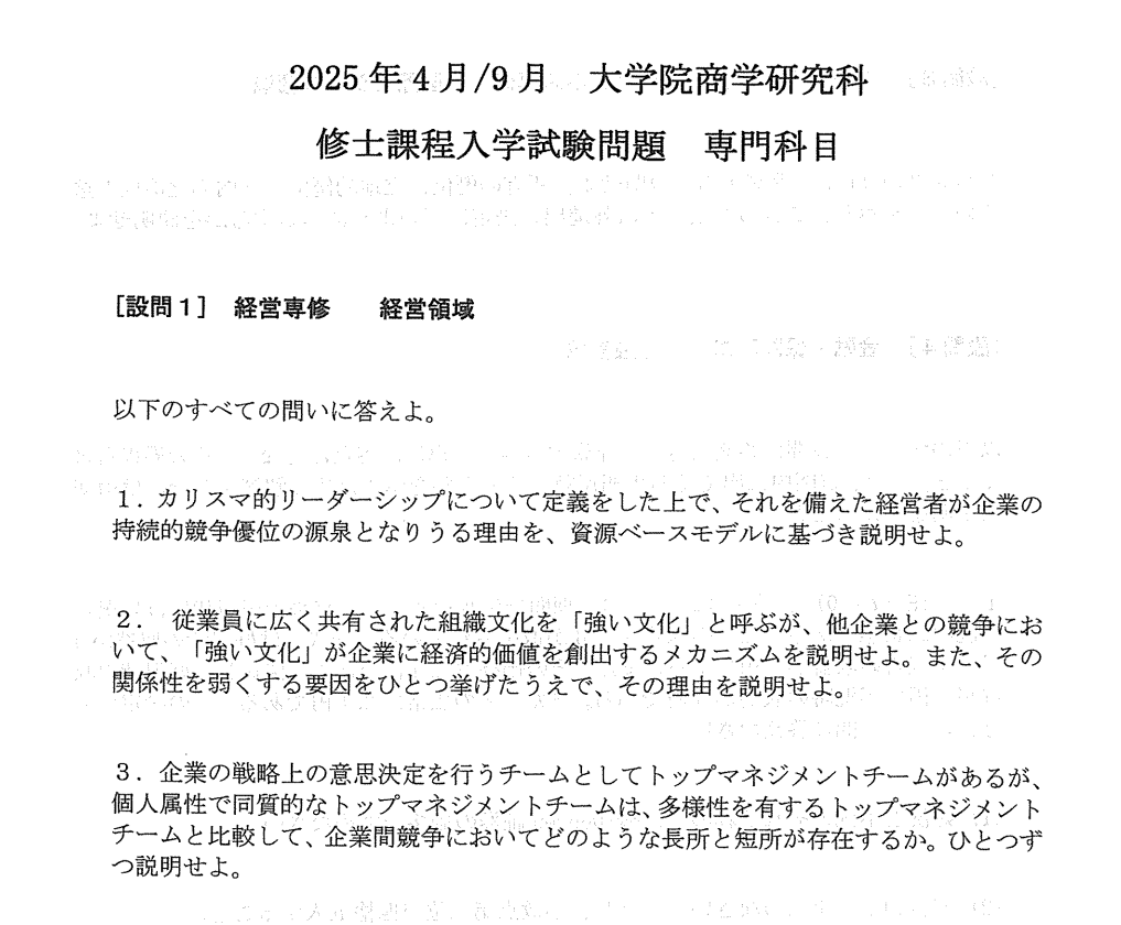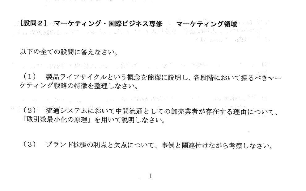 3.科目范围:包含5个科目的9道问题,其中经营学通常在“经营领域”、“市场领域”以及“国际经营领域”这3道题中选2道作答。