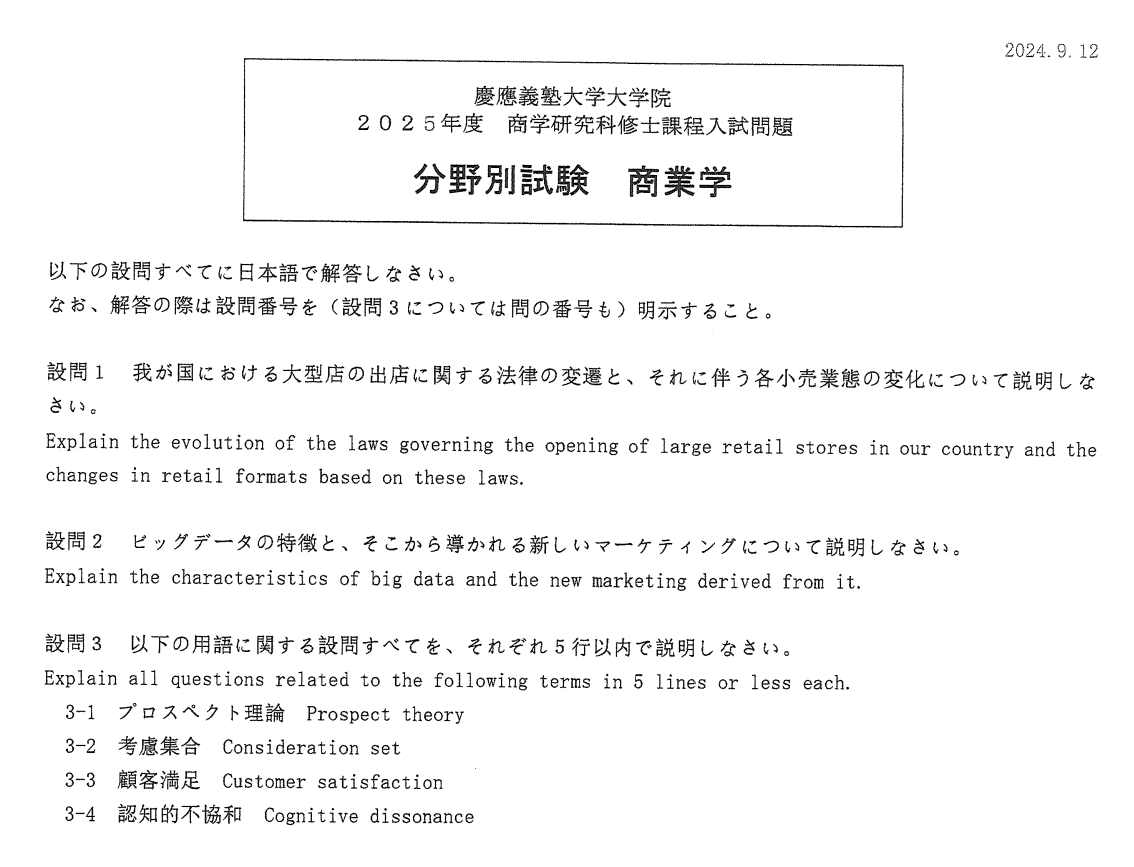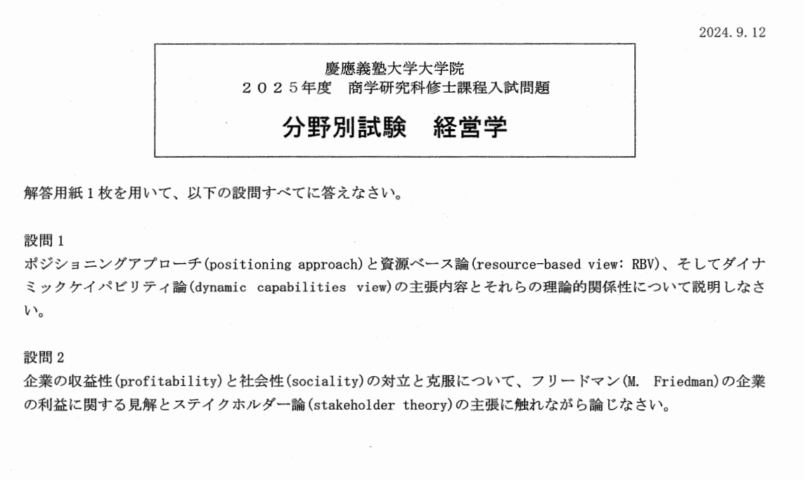 接下来的内容是2025年度的最新过去问,包含了商业学和经营学2个方面。