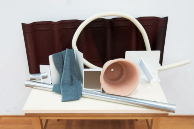 我们可以看到图中每个物品都有自己的颜色和形状。它具有独特的质感。整体灰色调与红棕色屋顶材料形成鲜明对比。圆形和矩形的对比色让画面具有丰富的层次感。我们需要问问自己,如何才能在自我意识的基础上建立自己的表达方式。