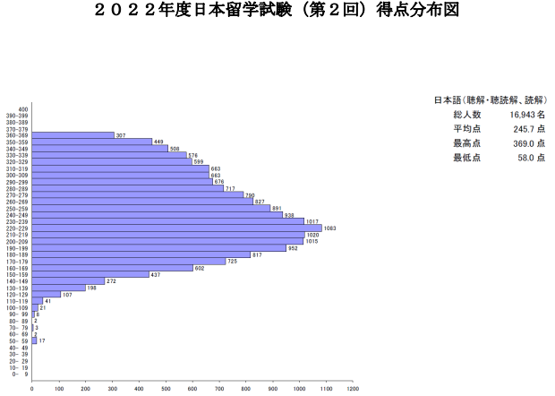 其次,我们以11月留考中日语(不包含记述)的得点分布来看的话: