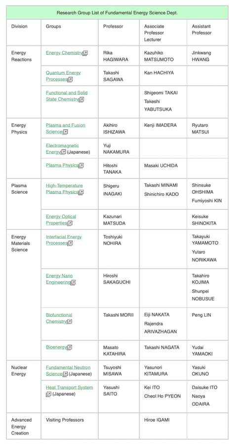 基础能源科学系(FES)便纯粹能源科学,能量反应,能量物理学,等离子体科学,能源材料科学,核能,先进能源创造(仅客座教授),再细分也有14个可以选择的项目,选择面相当的广了。