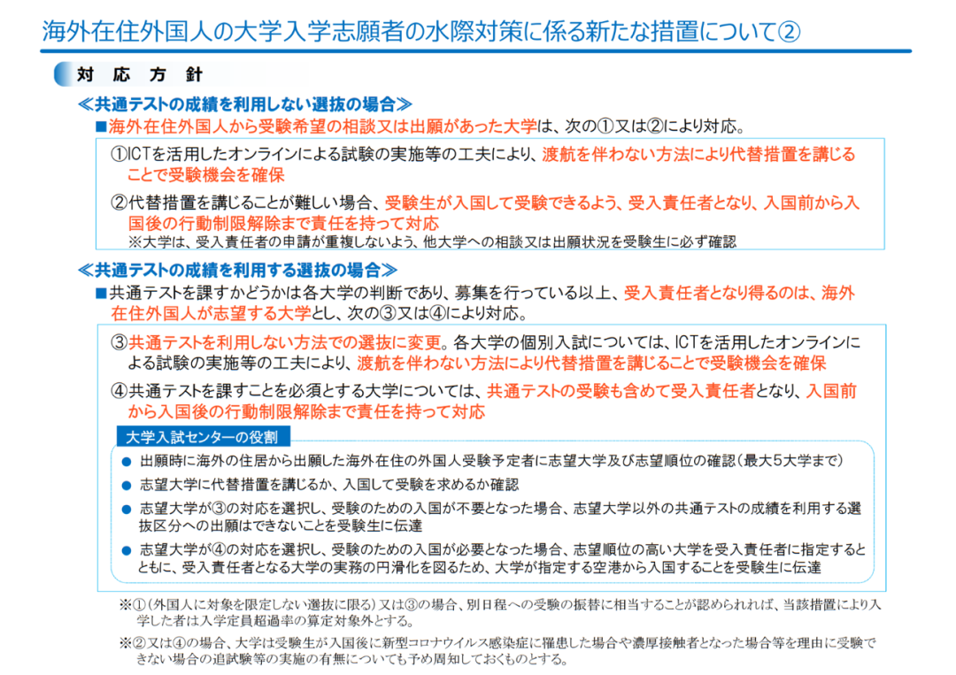 「考试目的入国」:去年11月日本就发布了可以考试目的入国的签证,特别是顶级大学为了能够更好地吸引国际留学生的目光,也在积极配合该项目,但是需要注意的是一学一签,资料必须得由确认考试的大学帮忙办理,也需要事前具体确认该校能否办理此种签证。