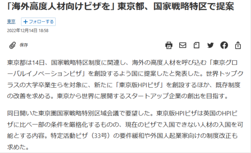 「東京版HPIビザ」が間もなく実現するかも!詳細のチェックは早めに。