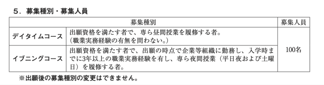 • 入学志愿和调查票(学校指定用纸,报考晚间课程的考生必须填写工作履历)