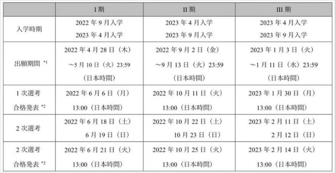 出愿一共有三期,对应的入学时间也有三次,第一期(22年9月,23年4月入学)的选考已经结束,有兴趣的同学可以看一下第二期和第三期(23年4月,23年9月)的出愿,分别在今年的9月2日~9月13日,以及明年的1月3日~1月11日。