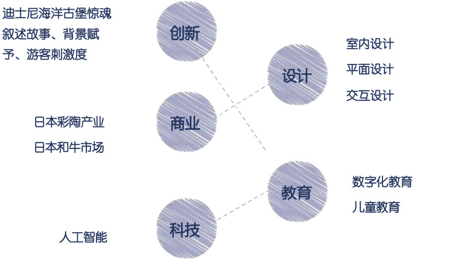 更详细的分支有5个大项目,分别是创新、设计、商业、科技、教育。
