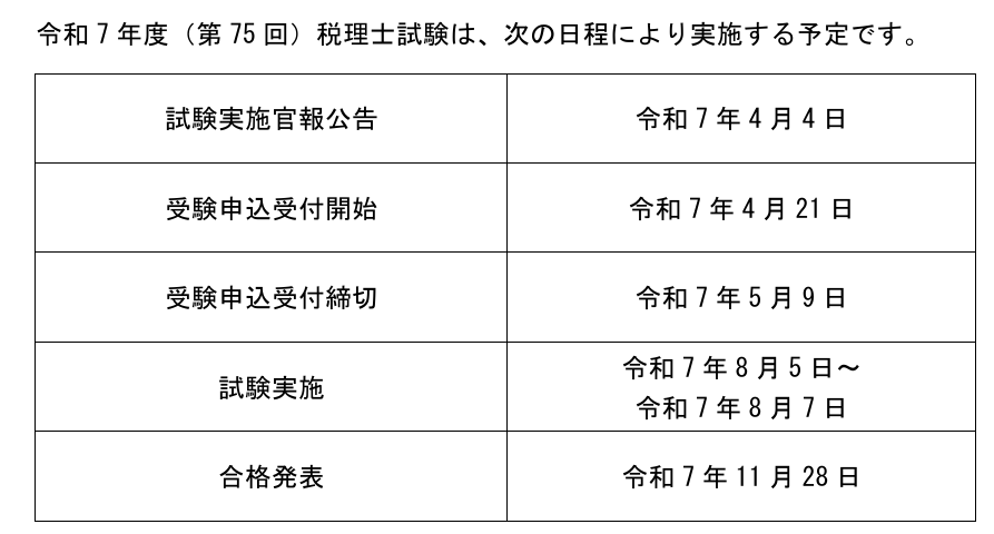 税理士试验每年举行一次,以令和7年为例,试验具体安排如下