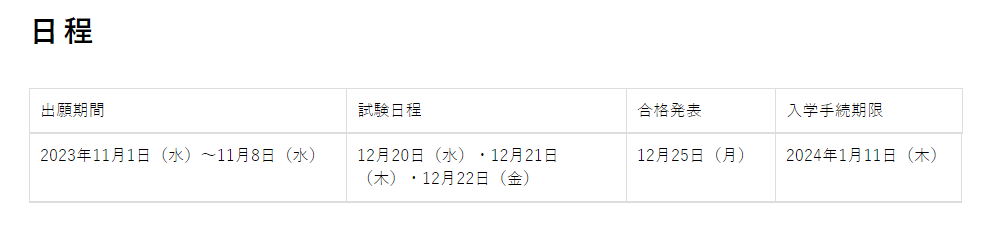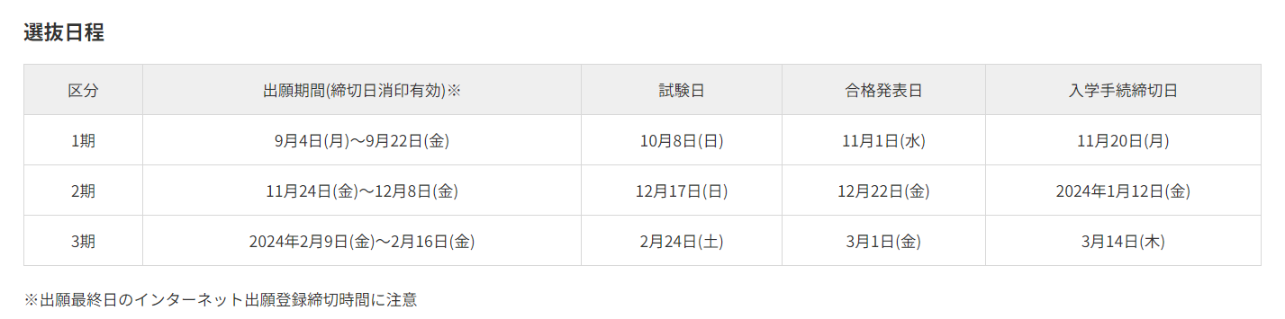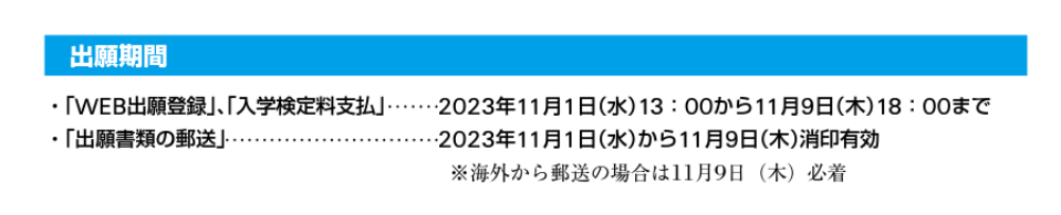 出愿时间:2023年11月1日(水)13:00~11月9日(木)18:00[WEB出願のみ]