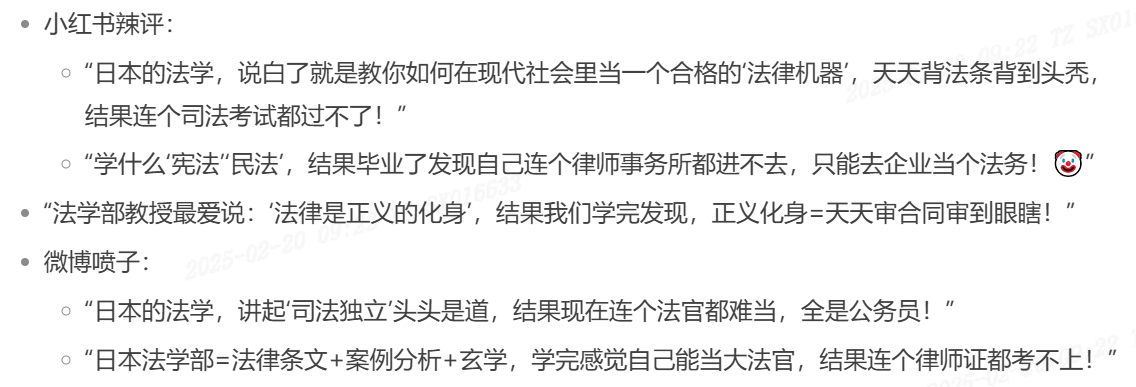 - “日本的法学,说白了就是教你如何在现代社会里当一个合格的‘法律机器’,天天背法条背到头秃,结果连个司法考试都过不了!”