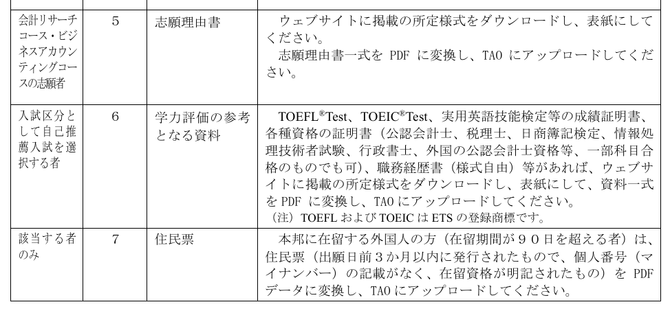虽然没有强制提交,但是出愿时仍可以选择附上托福、托业等英语成绩或者簿记2级、3级的合格证书,作为补充材料提高自身的竞争力。