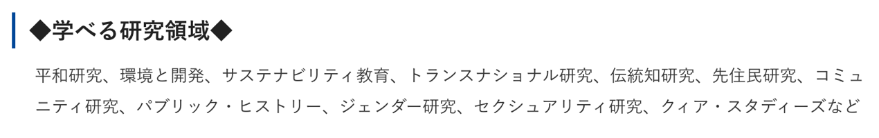 该课程旨在通过跨学科的研究方法和实践导向的学习方式,培养学生在多元文化背景下分析社会问题、设计解决方案的能力。学生将深入研究和平研究、环境与发展、可持续发展教育、跨国研究、传统知识研究、原住民研究、社区研究、公共历史、性别研究、性研究和酷儿研究等领域。