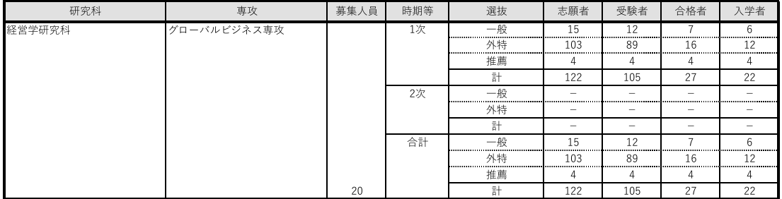 以24年度的数据为例,经营学研究科整体志愿人数122人,最终合格27人,22.13%,总的来说录取人数还是比较多的。