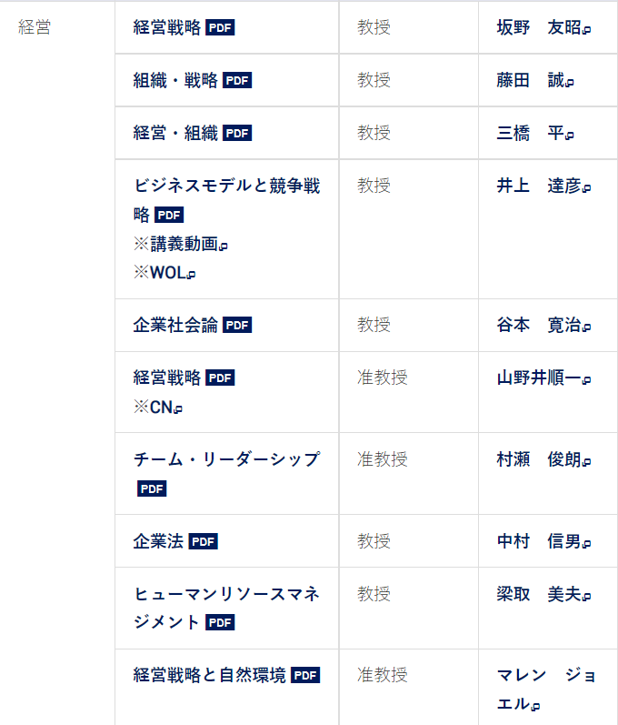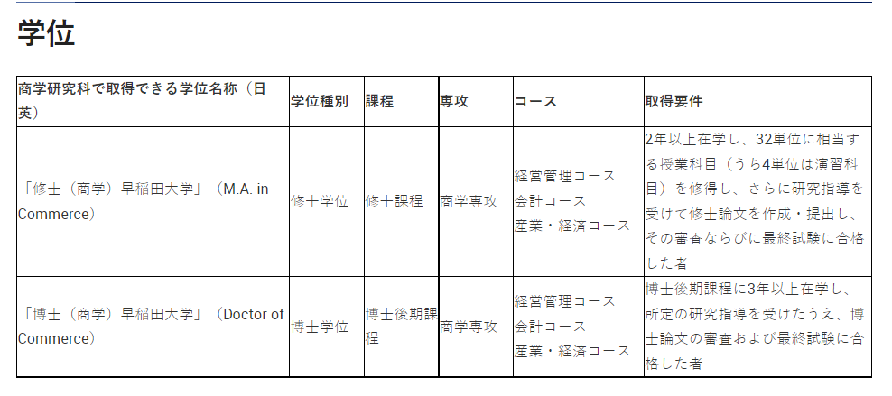 正如以往的毕业生进路所证明的那样,在各个领域都学到了知识的许多毕业生们作为研究者和高度专业的职业人对社会做出了很大的贡献。另外,这三门课程的课程以平日的白天为主,修完的学生可以获得硕士(商学)学位。