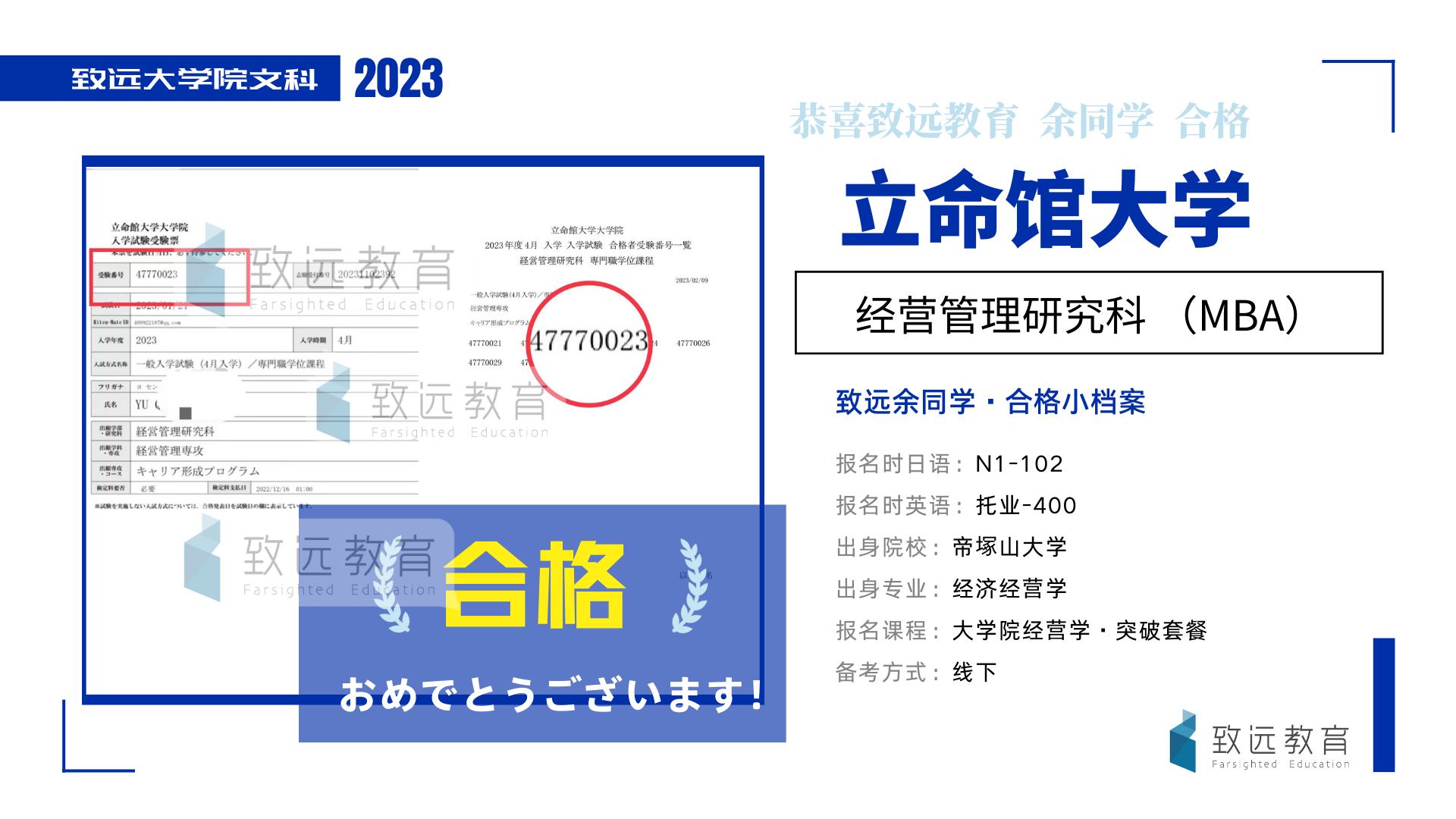 致远李同学成功合格早稻田大学院商学研究科经验分享~